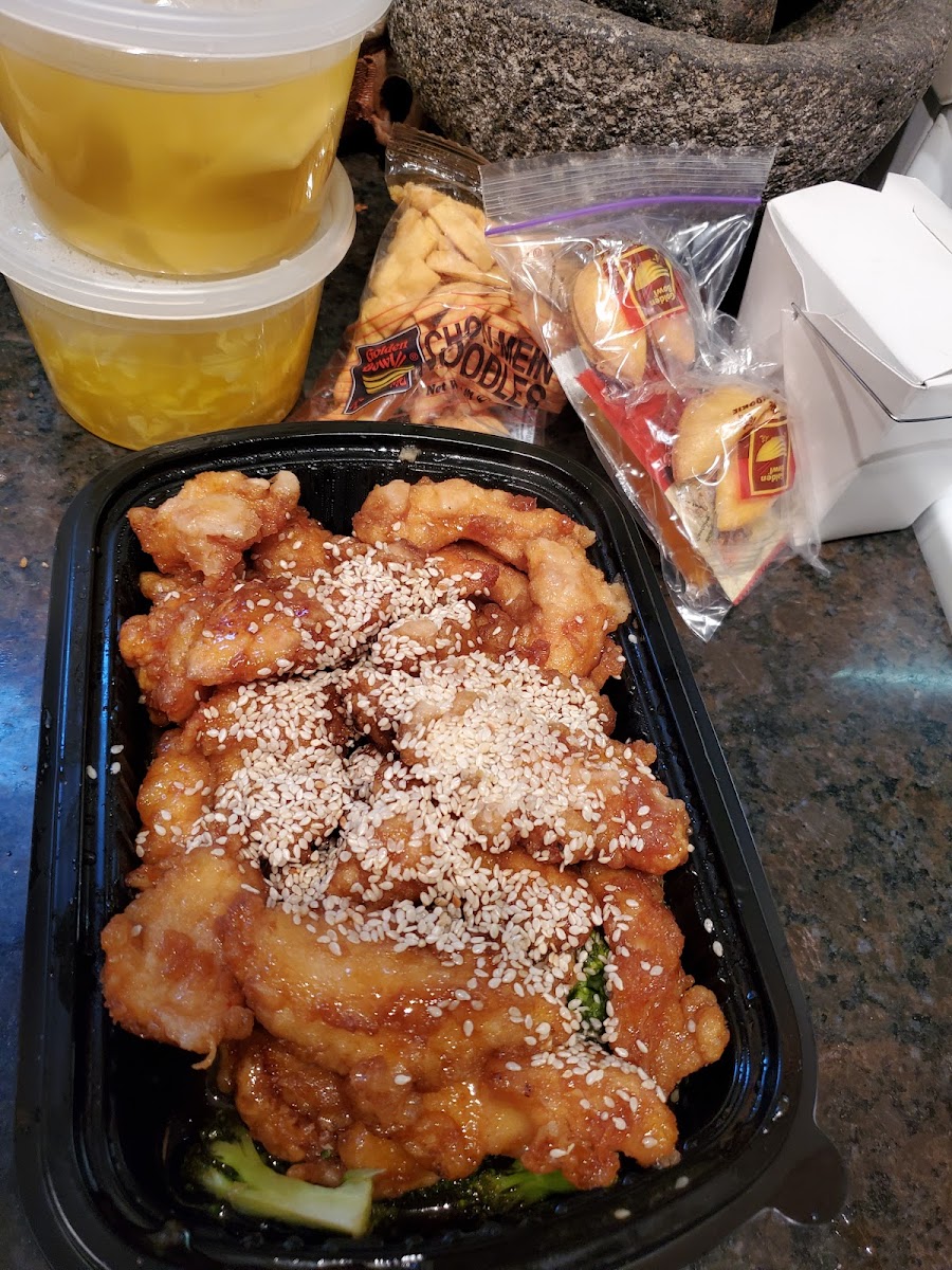 There's your local American-Chinese food, traditional Chinese food, and then there's T.S. Ma that fits in between the two. A friend of mine only orders from here. I finally took the plunge to try it out. Now for food. Egg drop soup (5/5) - Not hard to mess up. Good flavor and umami. General Tso's Wings (5/5) - No weird bones--just good wings in their sweet sauce. Ma's Braised Beef Wrap (5/5) - Delicious thin slices of beef shank in a wrap with hoisin. This was a great way to Segway into our entrees. Chicken Chow Fun (4/5) - Nice wide noodles with chicken and onion in a sauce. Nothing amazing but still solid. General Tso's Shrimp (5/5) - I should chosen something else because I got the wings in the same style. The shrimp was fresh, large, and really good. They offer dumplings, and even Peking Duck. The downside is you have to pre-order the duck two days in advance. That's too long when I want it now. Another cool thing is they bring the food in a branded heat insulated bag to keep your food warm. I love that. The price is a slightly more than your local folks, but the couple extra dollars are worth it. This might be our go to from now on.